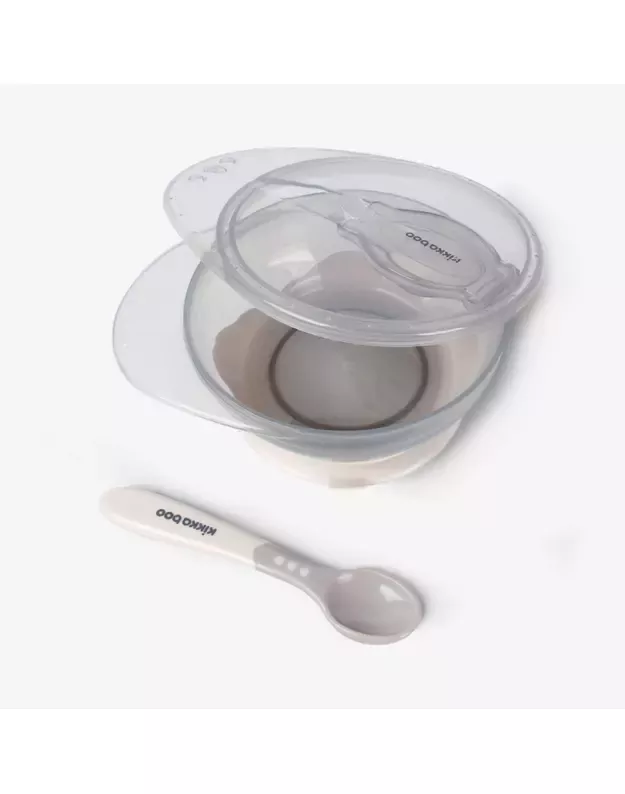 Silikoninis dubenėlis su šaukštu – Beige